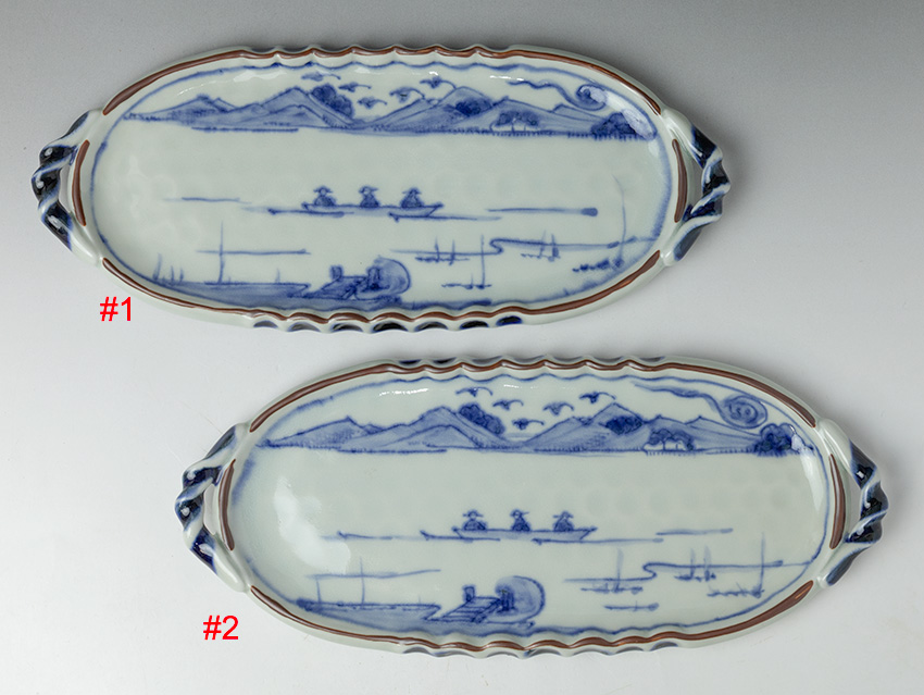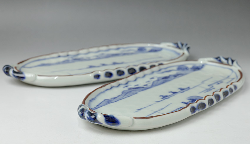 Arita Porcelain Hand-painted Sometsuke Sansui oval dish