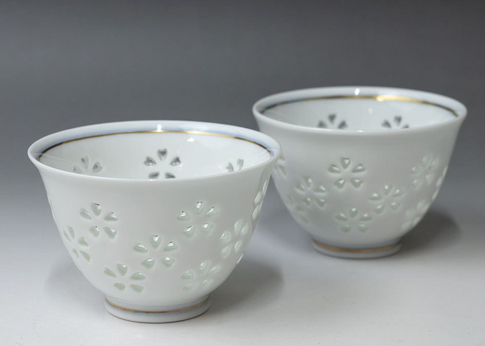 A very unique cup from Hasami, Nagasaki prefecture. Cherry blossoms created by individually hand-
