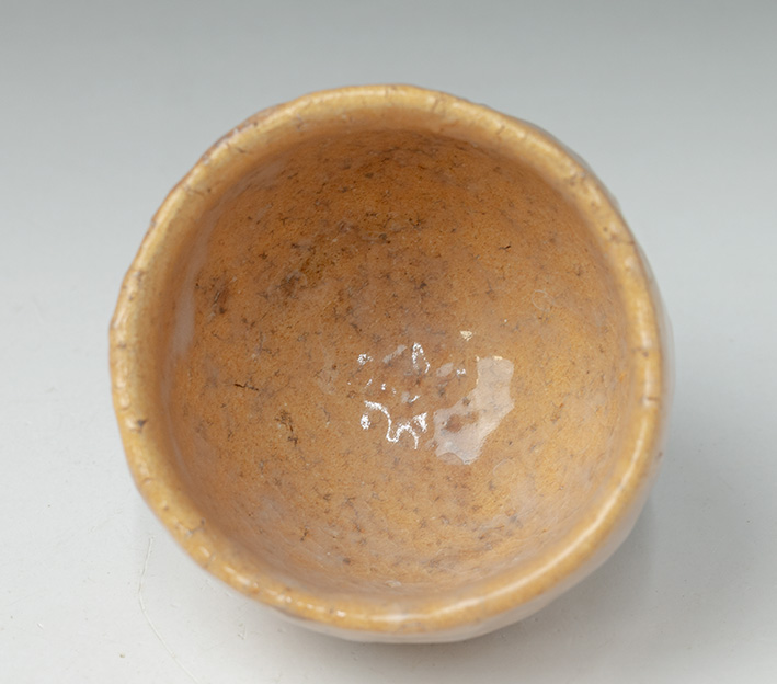This guinomi is loquat (pinkish-orange to orange) color covered with a thin white glaze.
