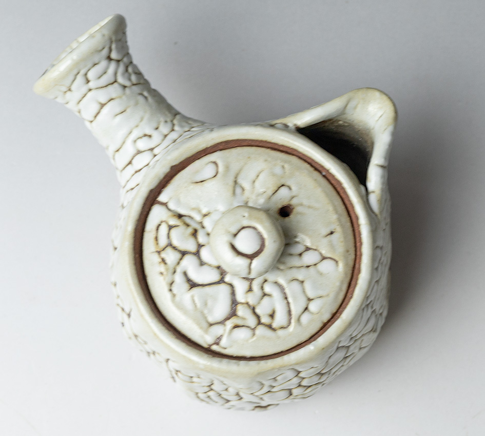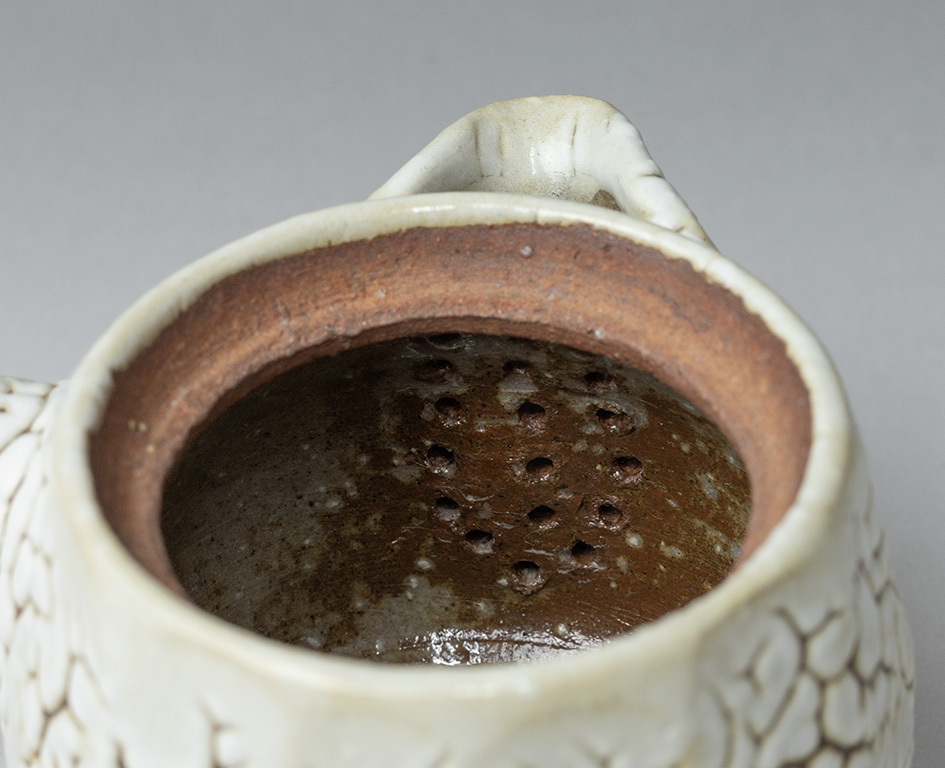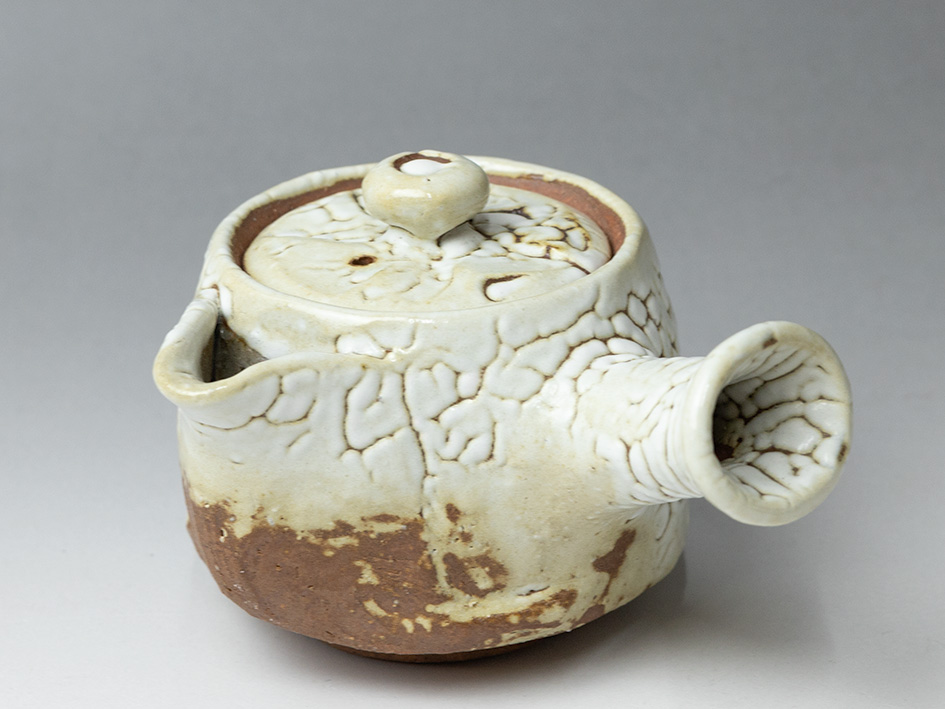 Thickly glazed in the kairagi style, this small teapot is the ideal size for gyokuro and high quality sencha green tea. The "kairagi"pattern, so named because it was thought to resemble the sharkskin used for the handles of Samurai swords, provides a perfect contrast between the smoothness of the glaze and the textured clay beneath.