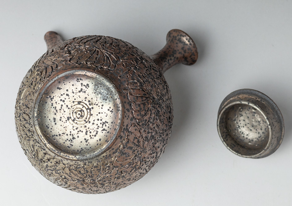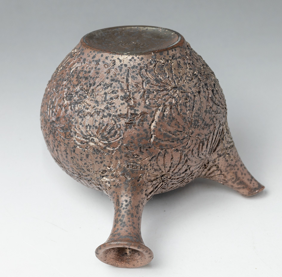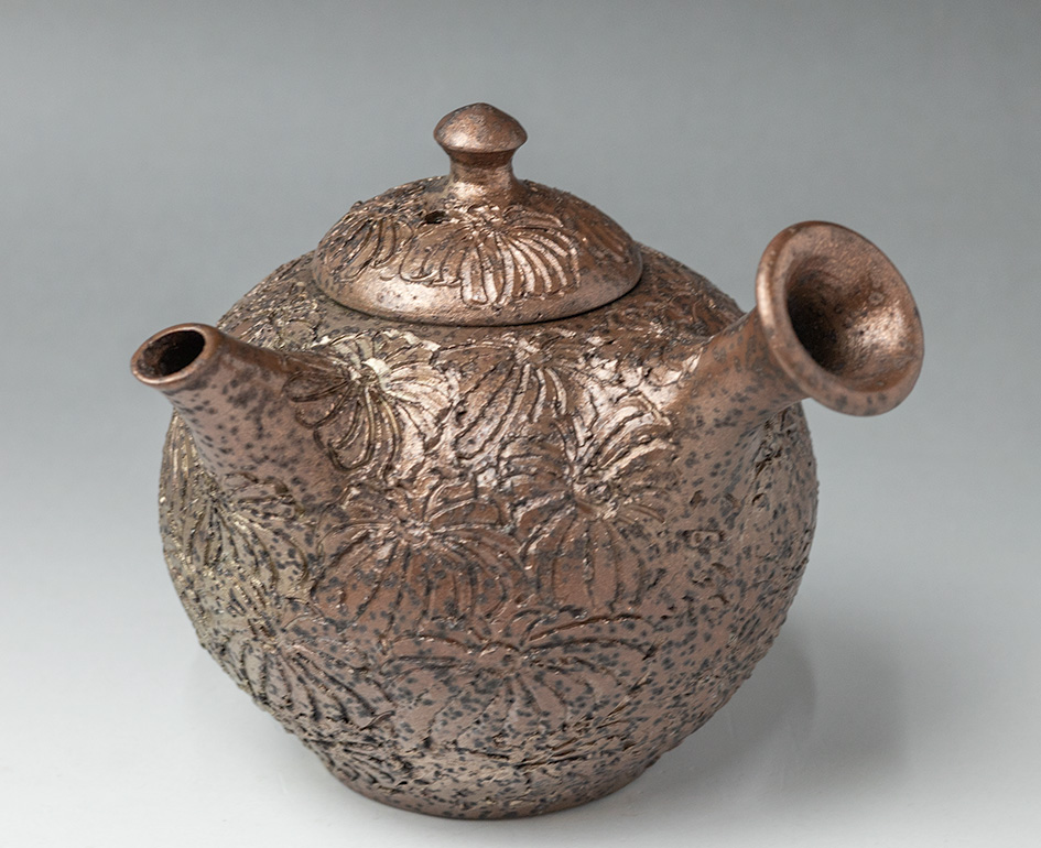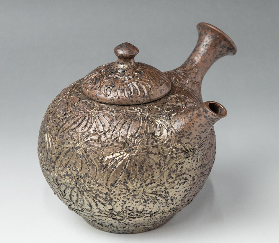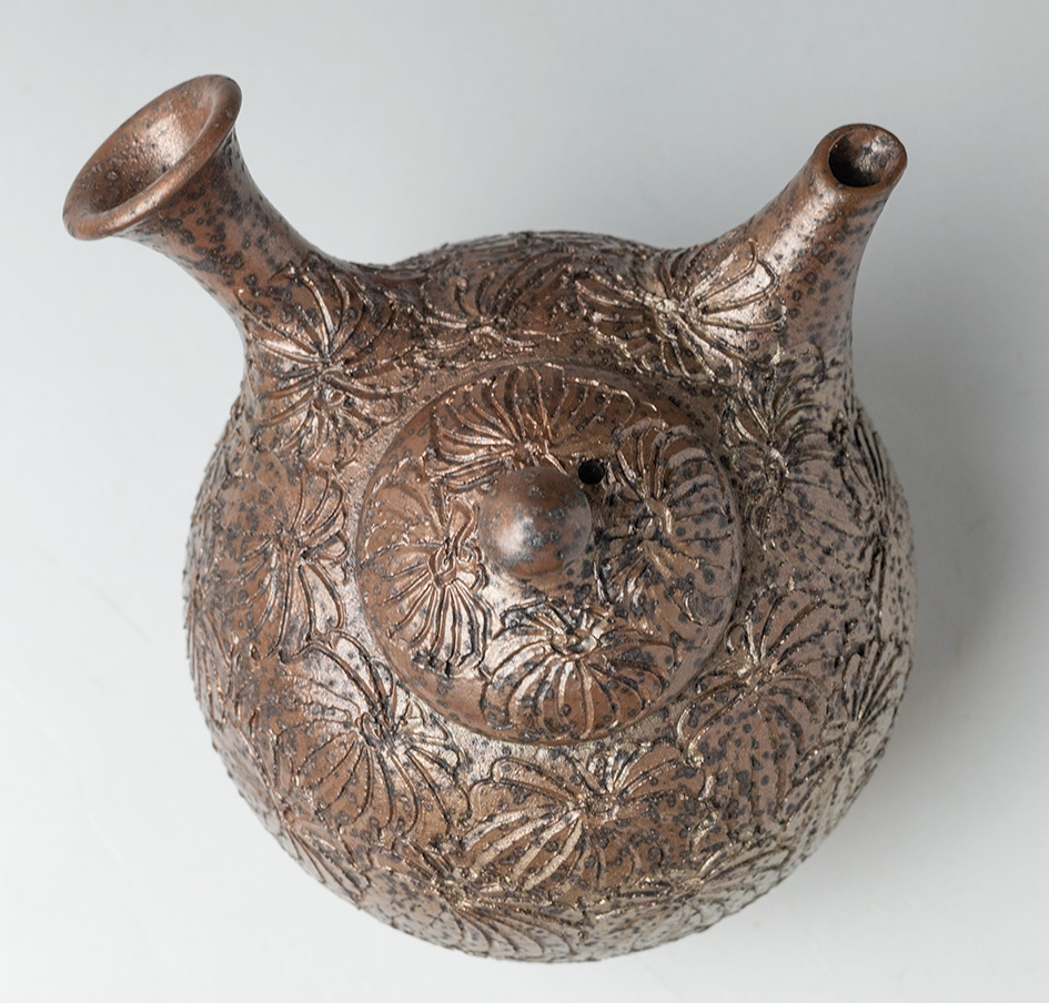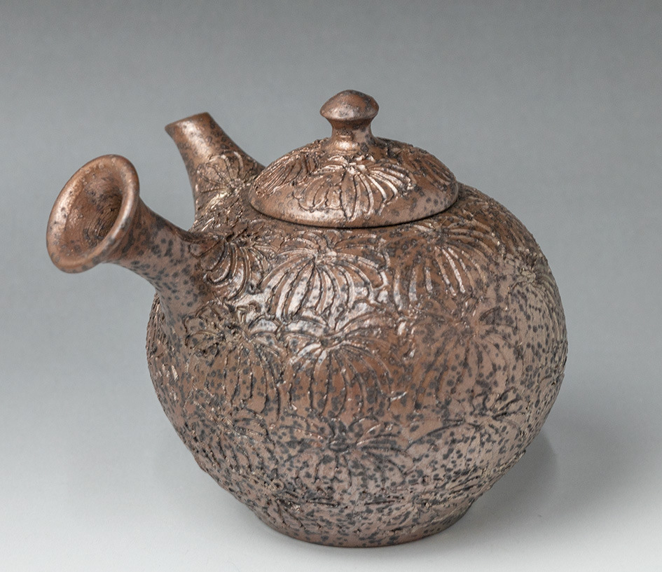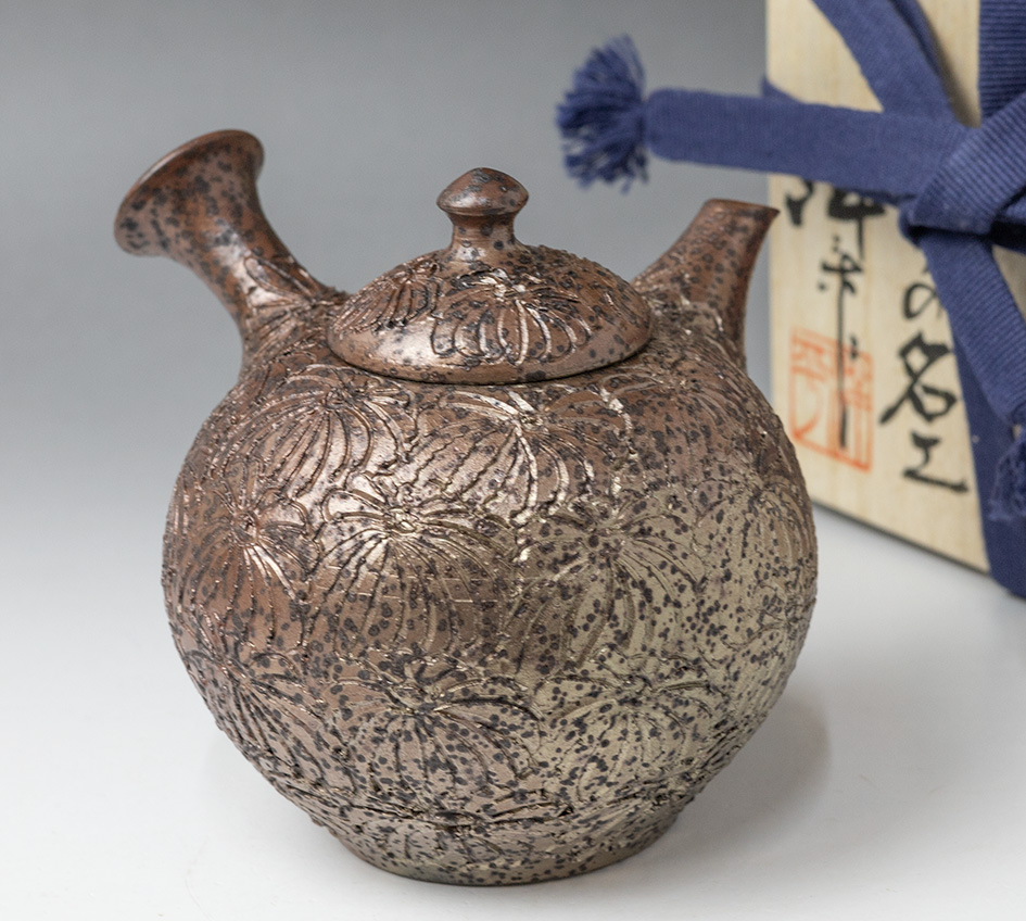 Engraved Chrysanthemum teapot by Konishi Yohei #190
