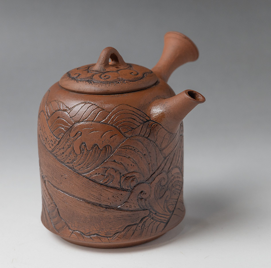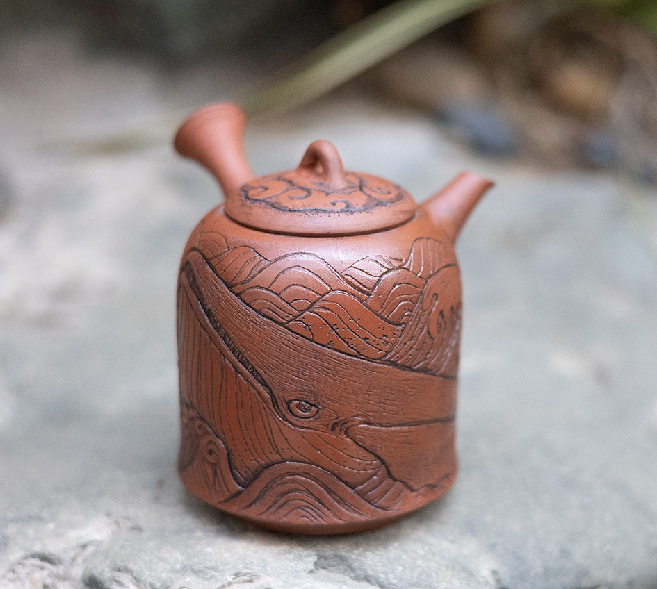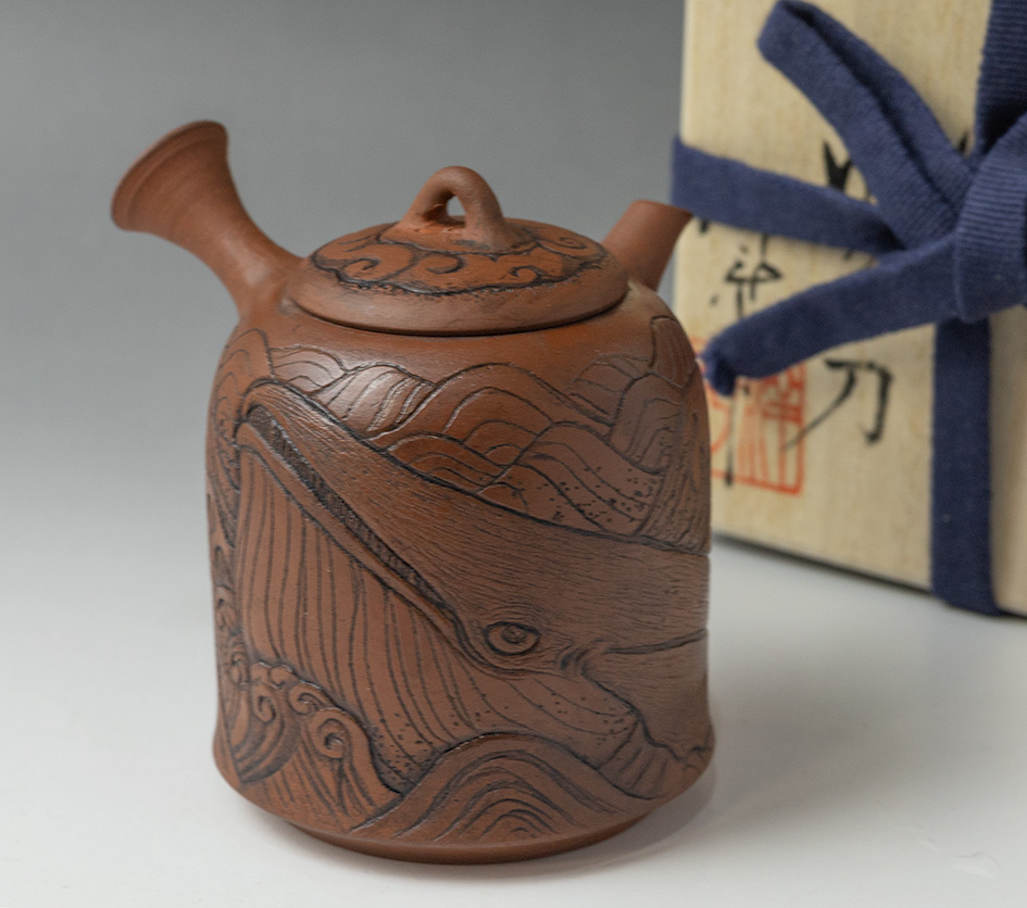 Whale engraved Shudei teapot by Konishi Yohei/ Yukari #15