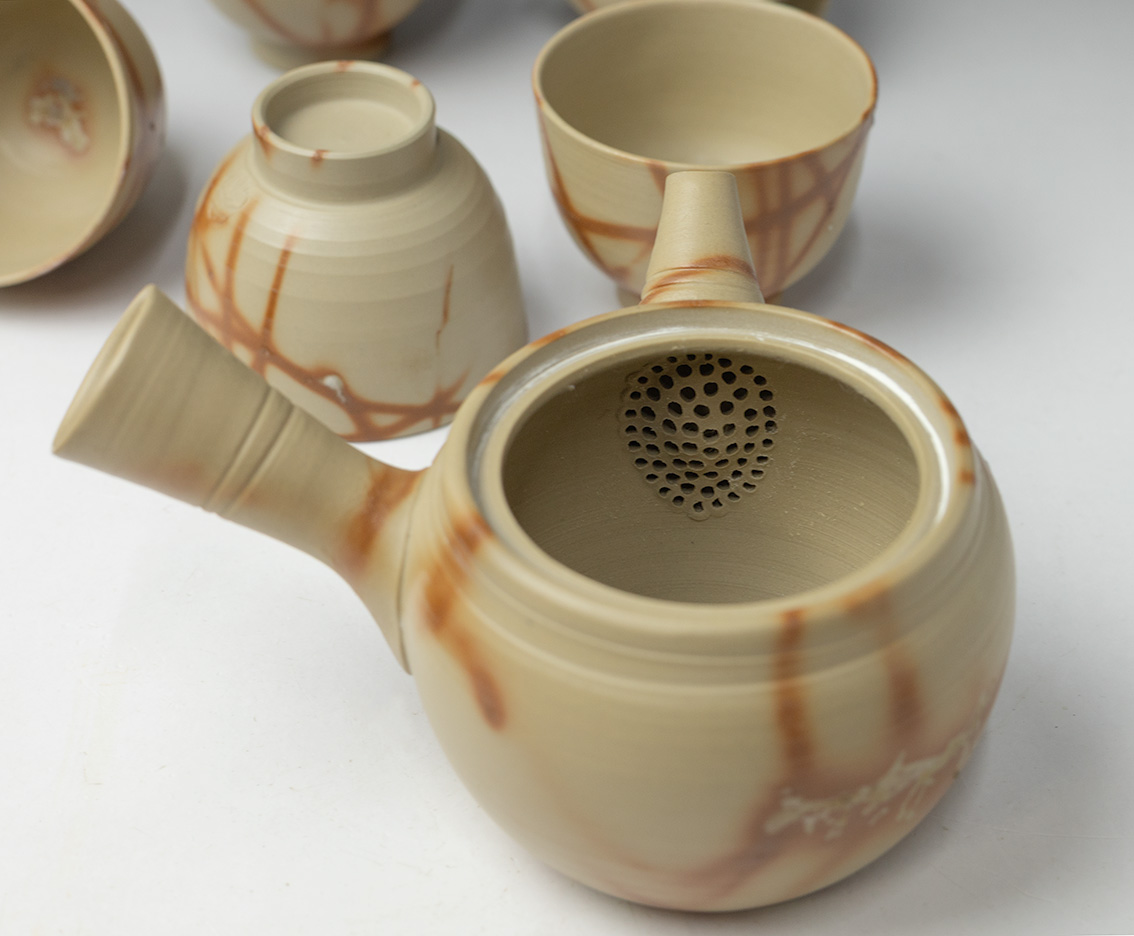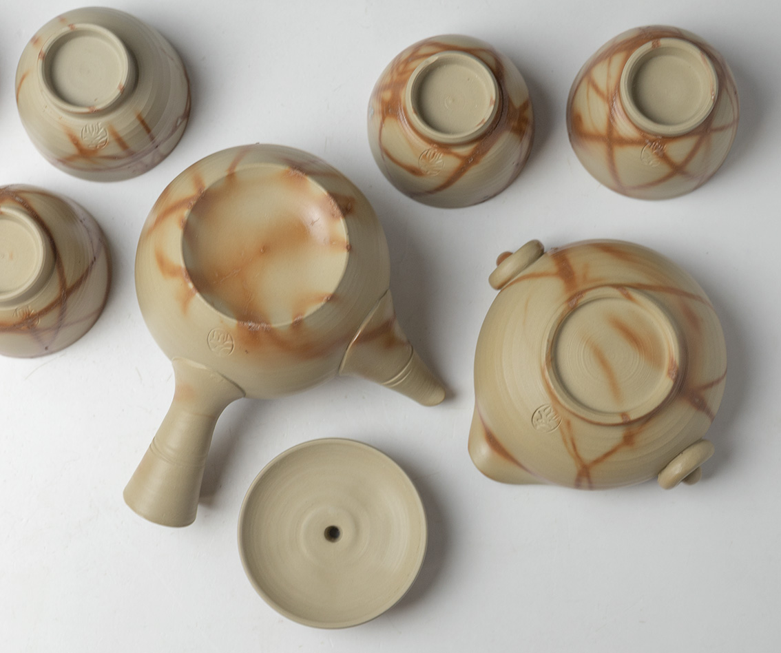 This is a set of one teapot, one yuzamashi and five sencha cups.
