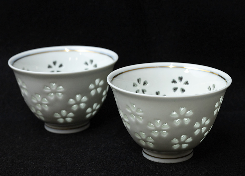 A very unique cup from Hasami, Nagasaki prefecture. Cherry blossoms created by individually hand-