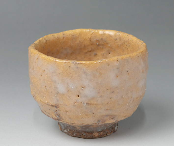 This guinomi is loquat (pinkish-orange to orange) color covered with a thin white glaze.