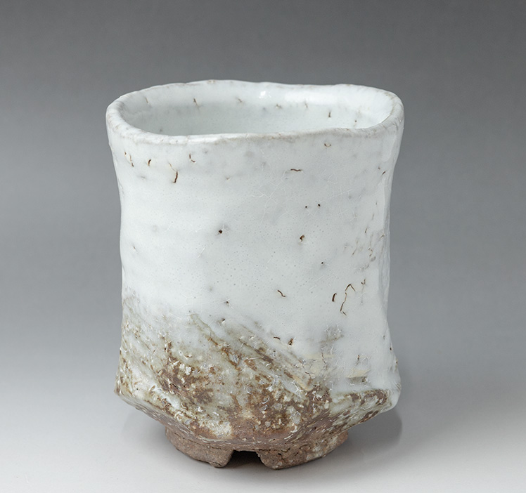 White Hagi Kairagi yunomi #62 by Mukuhara Kashun