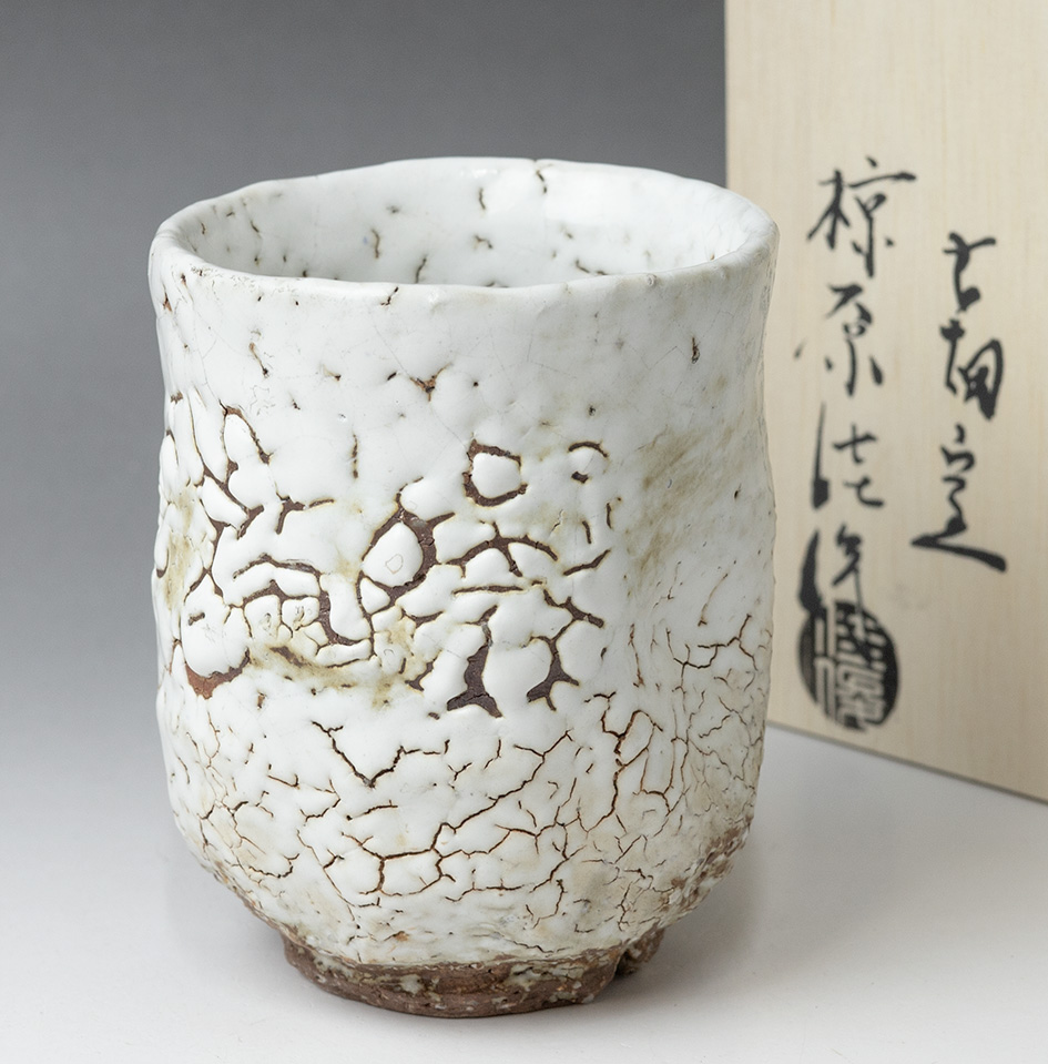 White Hagi yunomi #65 by Mukuhara Kashun