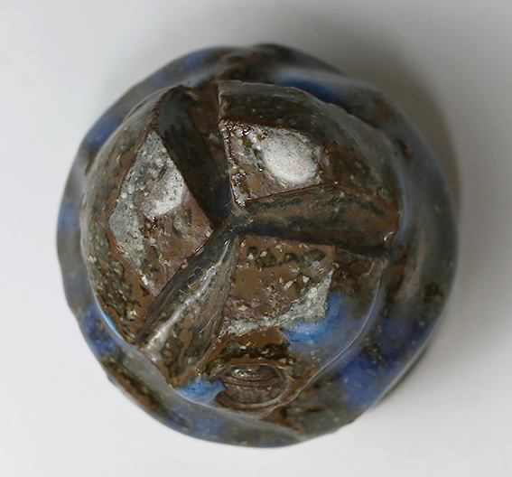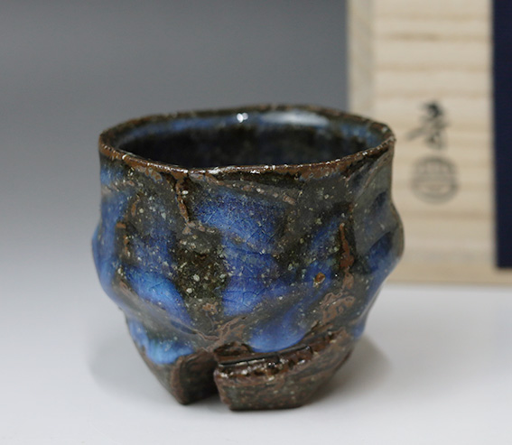 The blue color is obtained under reduced firing and the craftsman can achieve the gradating shades of blue by adjusting the blend of clay and glaze. Noutomi Susumu is the owner of the Choun kiln and also produces one-off pieces of art. He exhibits frequently and has won numerous awards and prizes.
