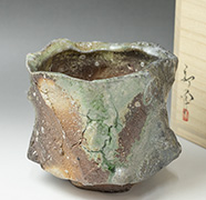 Iga, the home of Iga yaki, is a small castle town in the mountains of Mie prefecture, famous as the birthplace of Iga ninja. Geographically, Iga is very close to Shigaraki in Shiga prefecture and as a result the wares share certain common characteristics. The origins of Iga yaki are thought to lie in the 13th to 14th centuries, but it first came to provenance in the Muromachi period(1333 - 1573) when it flourished as a producer of tea ceremony wares under the auspices of prominent tea ceremony masters such as Sen no Rikkyu. Many flower vases and mizusashi ( water containers ) produced during the Momoyama period (1568-1615)have been appointed National Cultural Treasures. Once situated on the bed of Lake Biwa (Japan's largest lake), Iga benefitted from the lake's shift east to Shiga pref. due to changes in the earth's crust over 1.2 million years ago. Good quality clay, rich in minerals was left behind and this has made Iga yaki extremely resistant to heat. As a result the wares react well to repeated firing, giving craftsmen an excellent opportunity to experiment with different firing techniques. Iga yaki epitomises the Japanese aesthetic of "wabi sabi" with its rustic appearance and irregular forms. Today the area is home to many craftsmen who push the concept to its limits with purposefully deformed shapes, given extra character by the addition of "katamimi" handles and "herame"( gouges and dents crested with a special tool). Many pieces are covered with the classic "bidoro" glassy glaze which is formed by the ash in a hot kiln. Different effects and finishes are achieved by varying the positions of the pieces in the kiln and securing them with small shells which also leave their mark and add to the overall spontaneity. Inspired and dynamic, Iga ware is a combination of careful planning on the part of the craftsmen and their ability to give free rein to the impetuous forces of nature within the confines of the kiln, producing pieces which are created from the earth and shaped by the nature that surrounds them. |