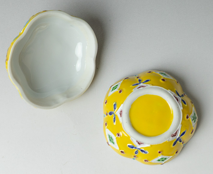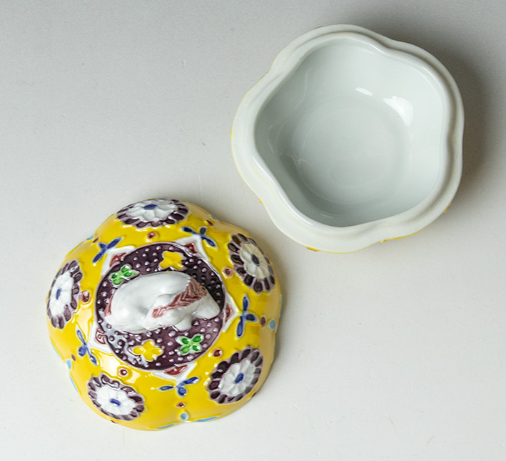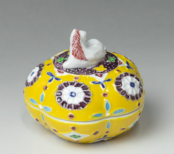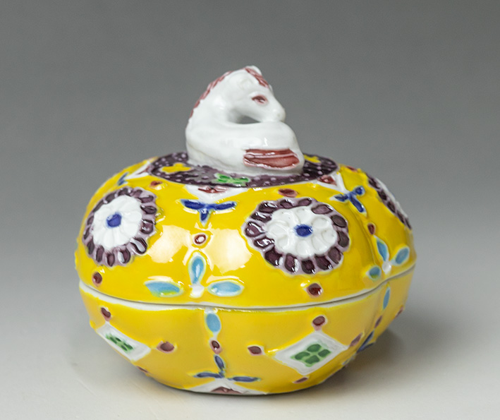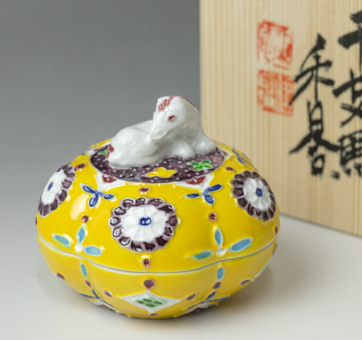 Kyoyaki Year of the Horse kougou incense box - Kochi (jiaozhi) yellow glazed