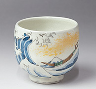 Auspicious Mt. Fuji motif pair cups/Rakunyu kiln SOLD |