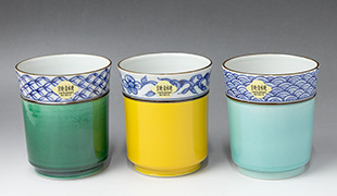 Handpainted guinomi sake cups from Ganka Kiln - Arabesque & Grass Patterns |