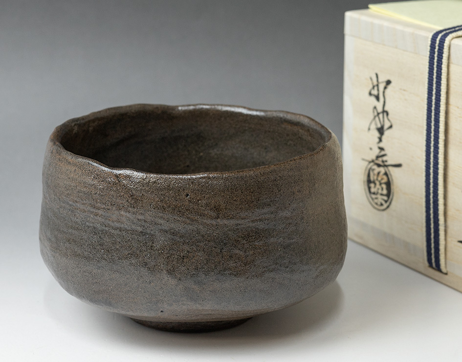 Kuro raku chawan by Shoraku III, inspired by Chojiro's Kamiya Black