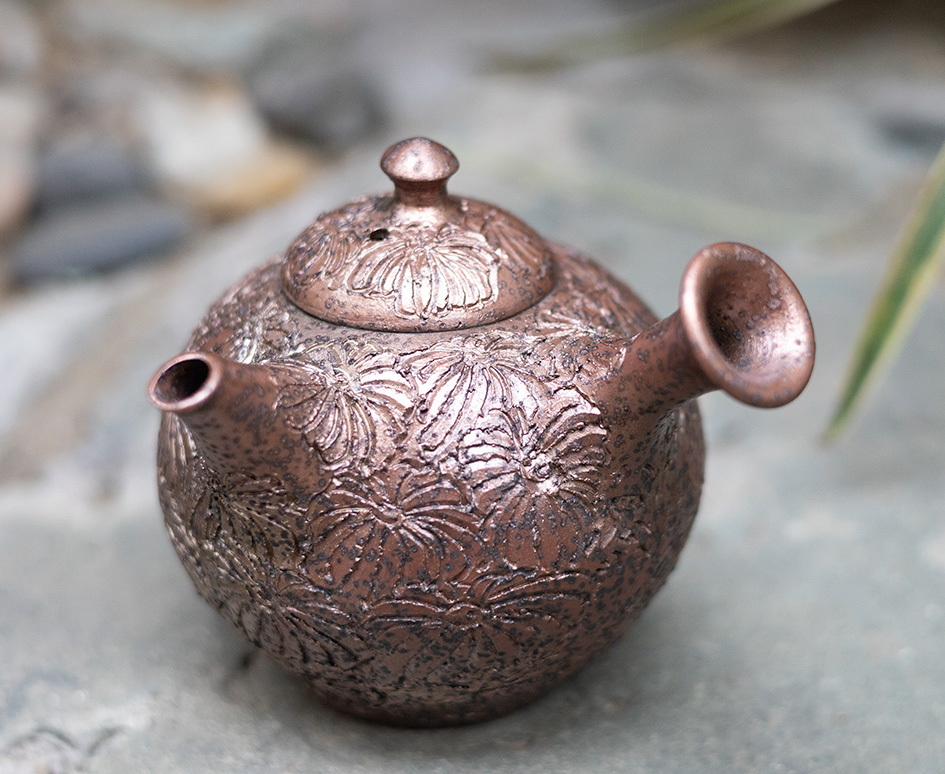 Engraved Chrysanthemum teapot by Konishi Yohei #190