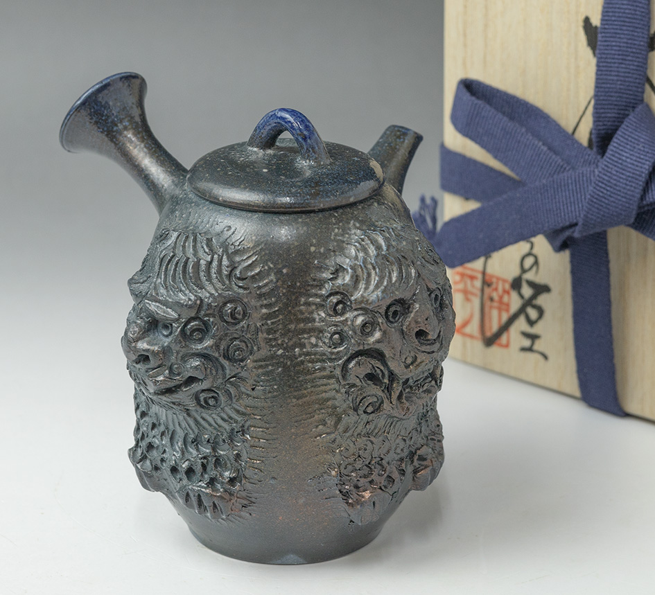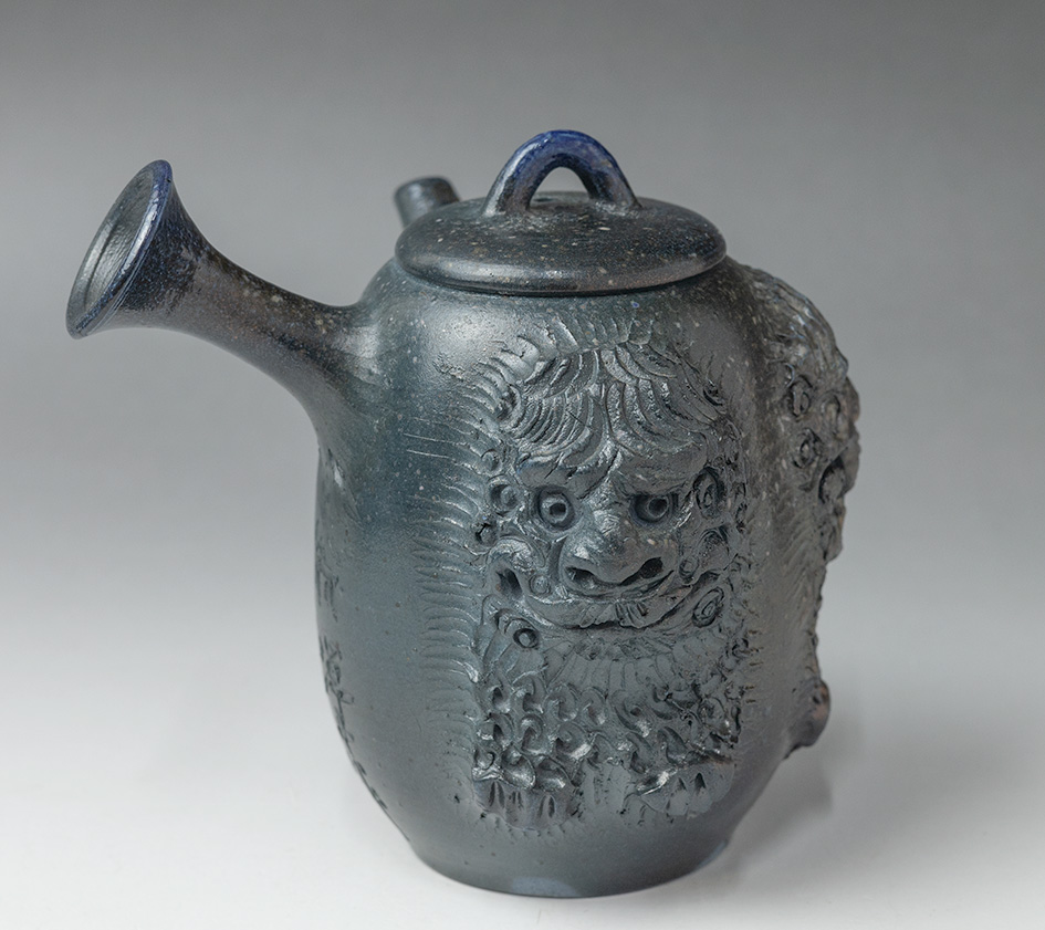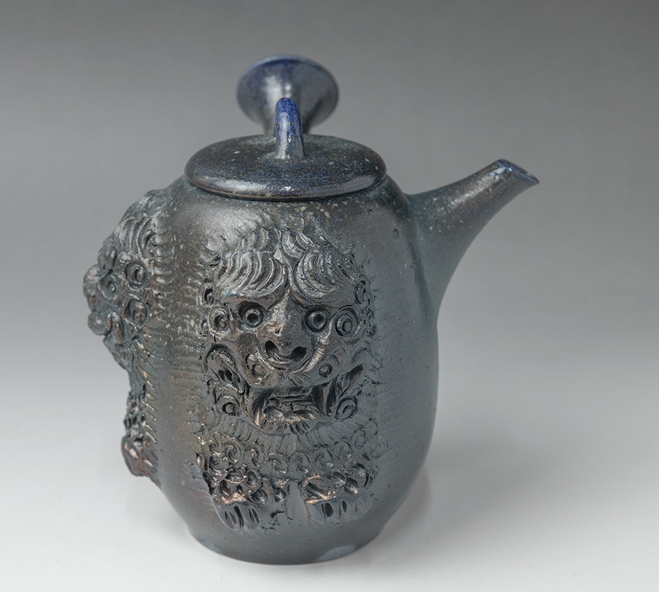 Shisa (Okinawan lion-dogs) sculpted Mayake teapot by Konishi Yohei #197
