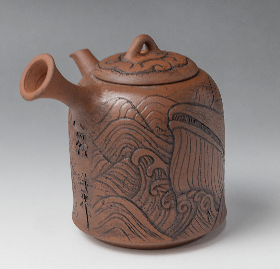 Whale engraved Shudei teapot by Konishi Yohei/ Yukari #15