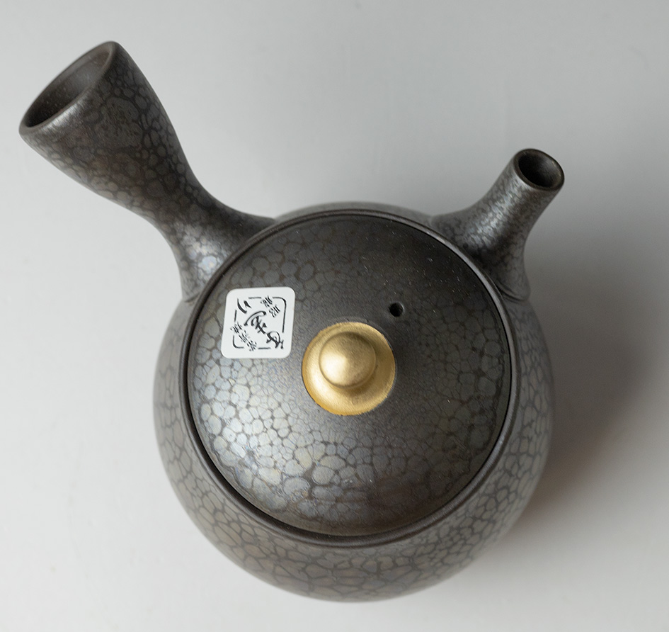 Tenmoku style kyusu with gold knob by Shoryu #11