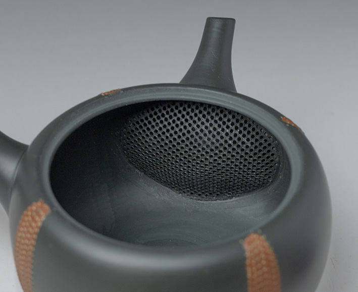This teapot appears black in the picture, but depending on the lighting, it reveals a deep greenish hue.