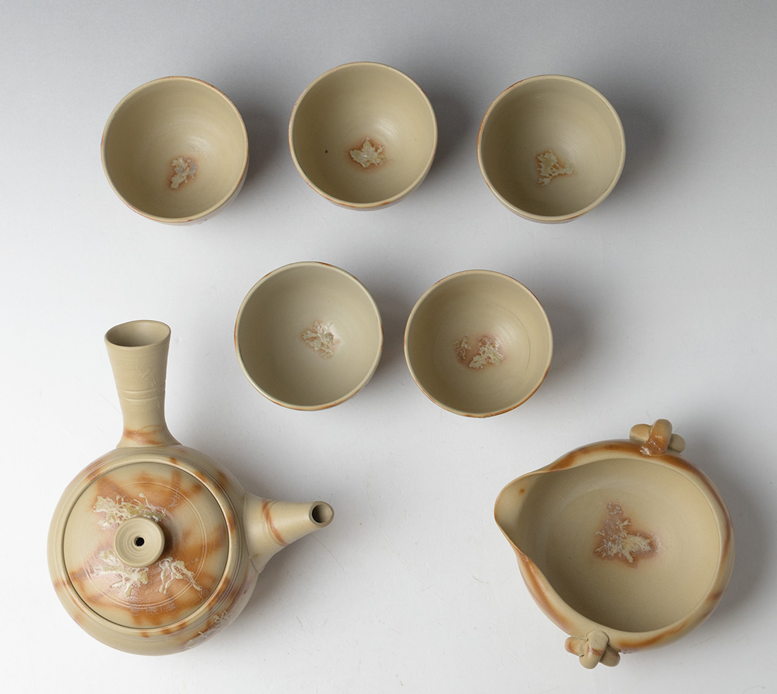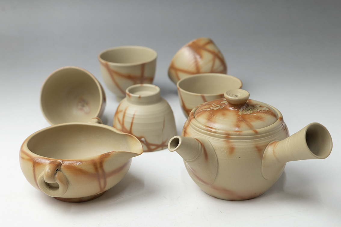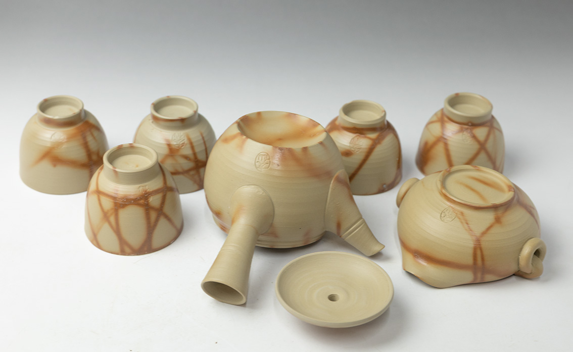 This is a set of one teapot, one yuzamashi and five sencha cups.
